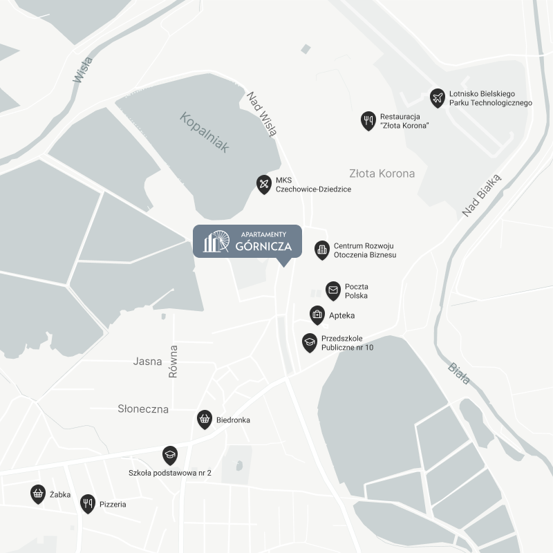 Okolie, v ktorom vznikajú Apartmány Górnicza, umožňuje aktívne tráviť čas aj po práci. V blízkosti sa nachádza rybník, športový klub pre deti i dospelých – MKS Czechowice-Dziedzice alebo letisko Bielskeho technologického parku (Lotnisko Bielskiego Parku Technologicznego).
